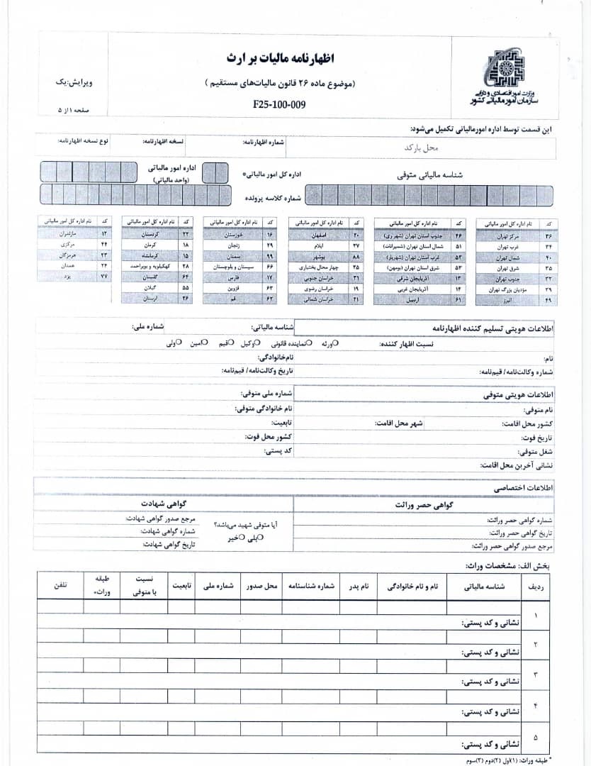 اظهارنامه مالیات بر ارث