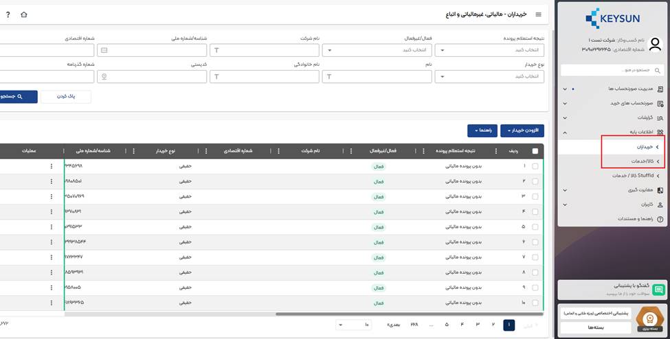 برای انجام این کار باید وارد منوی اطلاعات پایه شده و در ابتدا خریدار خود را با اطلاعاتی مانند شناسه ملی/کدملیی/کداقتصادی ثبت کنید و بعد از زیرمنوی کالا/خدمت، شناسه های مربوط به کالا و خدمت را که از سامانه شناسه کالا/خدمت سامانه مؤدیان دریافت کرده اید ثبت نمایید.