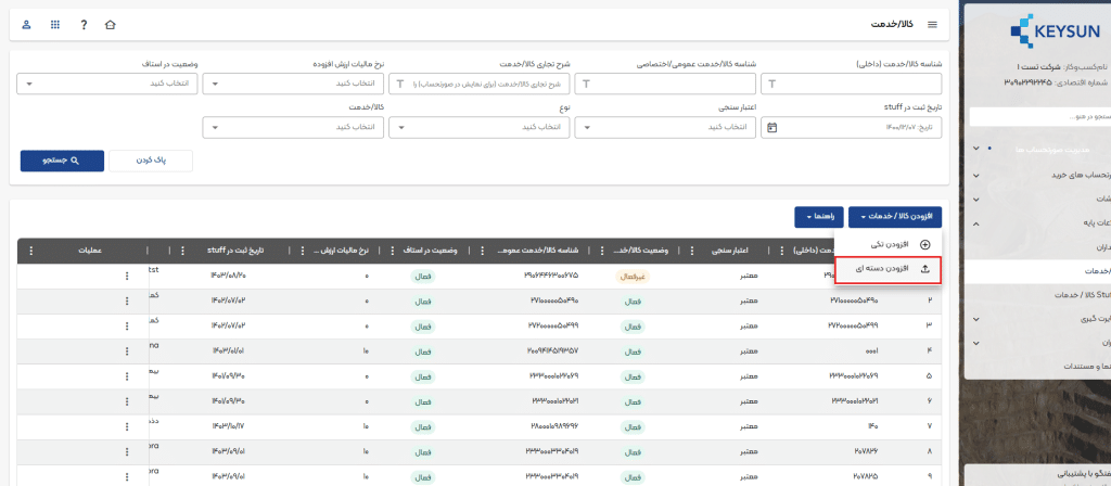 نحوه ثبت کالا/خدمت دستهای در حساب کاربری کیسان