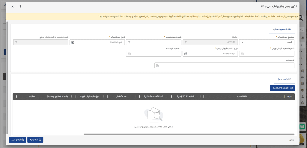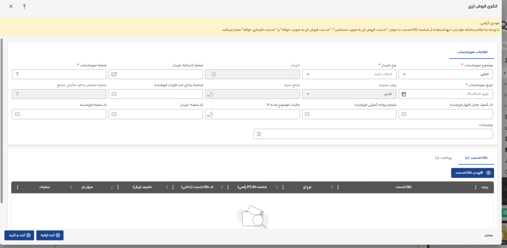 نکته! تمامی کالا/خدمت هایی که قرار است در صدور صورتحساب مورد استفاده قرار بگیرند، باید ثبت شده باشند.
