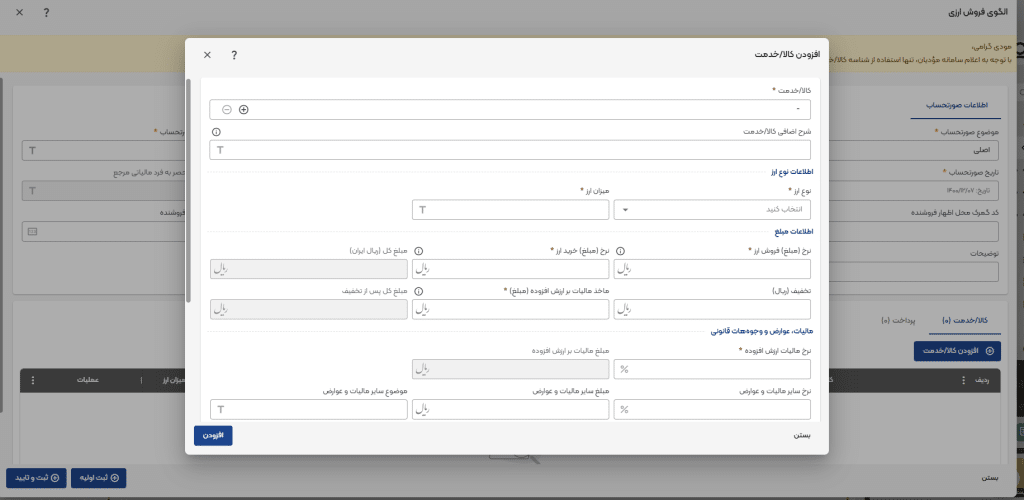 نکته! تمامی فیلدهای ریالی بجز فیلد مبلغ واحد، اعشار نمیپذیرند.