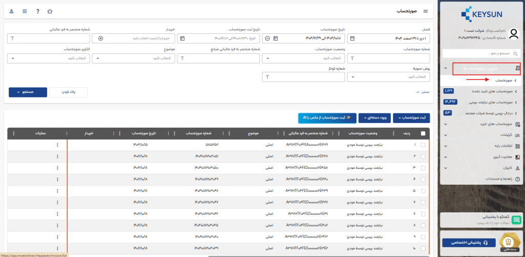 - در صورتی که صورتحساب ثبت و تایید بشود، ساعاتی پس از زمان ثبت صورتحساب، به «سازمان امور مالیاتی کشور» ارسال میگردد.